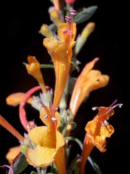 - na palec dlouhé, různoobalné, srostloplátečné (zygomorfně trubkovité), dvoupyské s protáhlými postranními laloky spodního pysku, třešňově červené nebo růžové (po anýzu vonící subsp. mexicana) anebo bílé (meduňkově vonná subsp. xolocotziana)