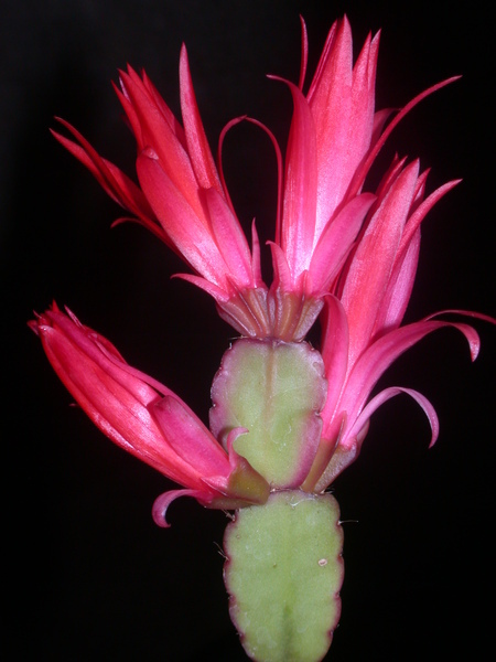 - akrotonicky větvený epifyt s plochými, přepadavými, článkovanými stonky a nápadnými velikými květy