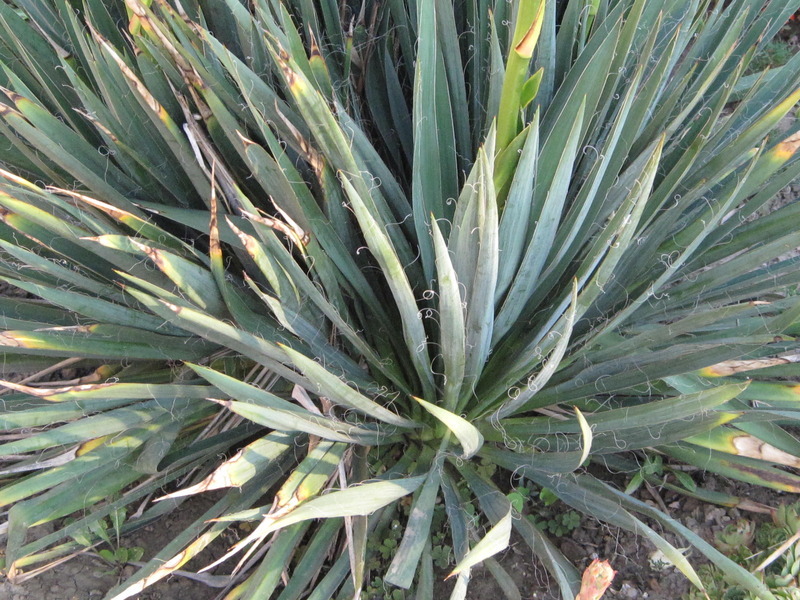- dlouze kopinaté,řemenité, tuhé, kožovité, na okrajích vláknité, šedozelené barvy; mladé listy uprostřed růžice vystoupavé, listy na okrajích růžice se zalamují