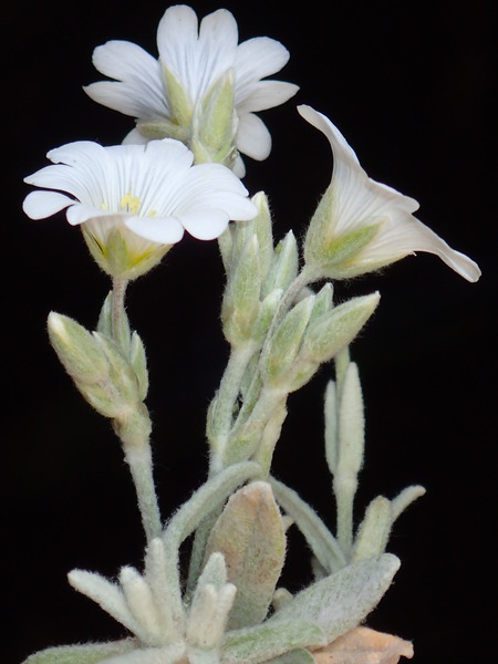 - oboupohlavné, různoobalné, volnoplátečné, pravidelně pětičetné, s až centimetr dlouhými, plstnatými, blanitě lemovanými sepaly a dvakrát delšími bílými dvouklannými petaly; semeníky s pěti čnělkami