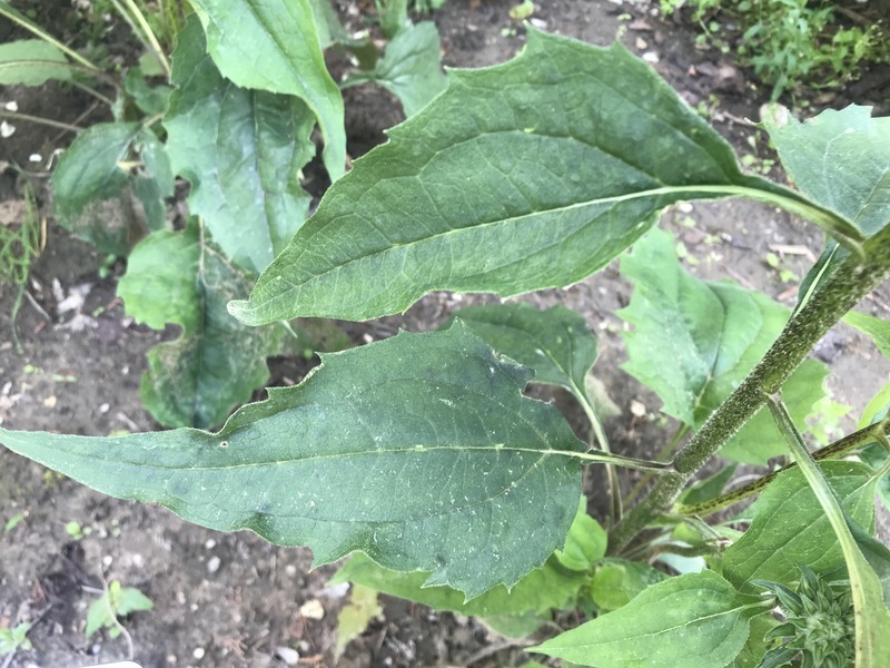 - přízemní listy řapíkaté, široce kopinaté, lodyžní střídavé, kopinaté s dlouhou protáhlou špičkou, ostře zubaté; sytě zelené, tuhé s výraznou žilnatinou