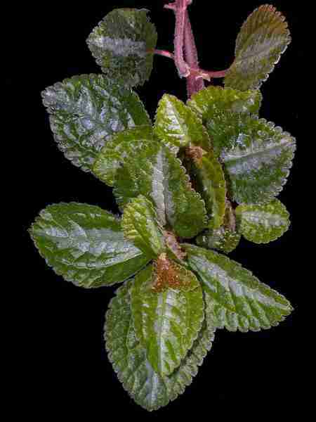 - velkolisté formy zaměnitelné s antillskou Pilea repens Wedd., celkově robustnější s listy téměř lysými, puchýřnatě svraskalými, a peruánskou Pilea strigosa Wedd., rezavě chlupatou s různopohlavnými květenstvími