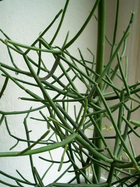 - výhony sukulentní, cylindrické, neostnitě, hladké a zelené; často vyrůstají v přeslenech; výhony až 1,5 cm tlusté; špička mladých listnatých výhonů je hnědě plstnatá až olysalá