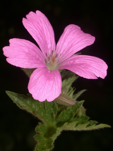 - nálevkovité, různoobalné s hrotnatě osinkatými, žláznatými sepaly a širokými, často srdčitě vykrojenými petaly, volnoplátečné, pětičetné, diplostemonické, purpurové nebo růžové