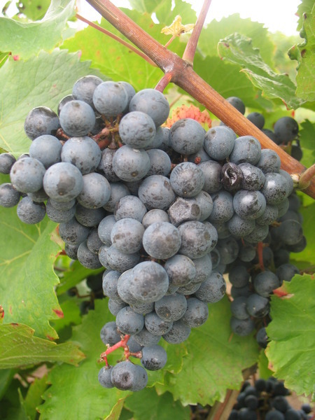 - středně velký, kuželovitý hrozen, často s křidélkem, poměrně hustý; bobule je malá až střední, kulatá, modročerná