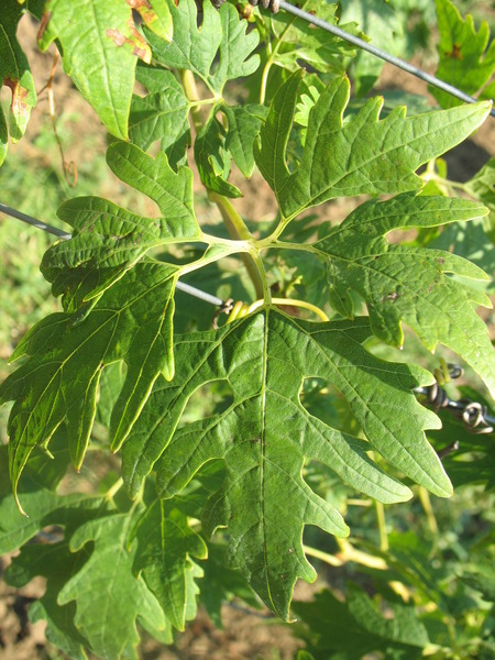 - středně velké, nápadně polostříhané, výrazně a hluboce vykrajované, řapíkový výkrojek je otevřený, všech pět hlavních nervů je holých, bez listové čepele; povrch listu jemně vrásčitý