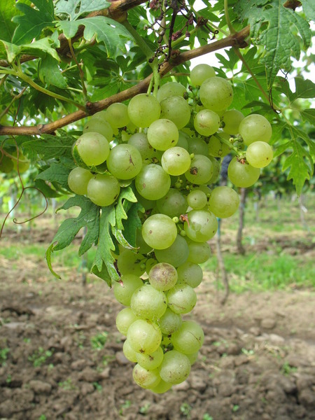 - středně velký hrozen, válcovitě kuželovitý, většinou poněkud volnější; bobule je středně velká, kulatá, žlutozelené barvy