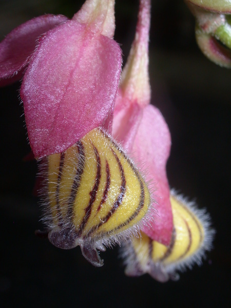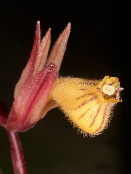 - oboupohlavné, břichatě souměrné, různoobalné, srostloplátečné s nafouklou korunní trubkou, pýřité, žluté s kaštanovým proužkováním, se silně redukovanými korunními cípy, pětičetné, resupinátní